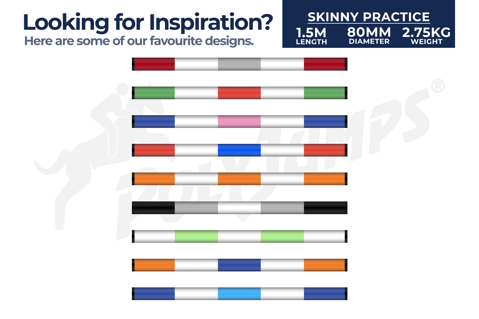 For our more advanced riders we offer our 1.5 m Skinny Poles; these create reduced width jumps that add an extra challenge for you and your horse.