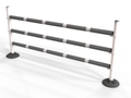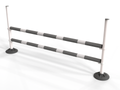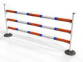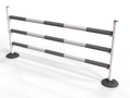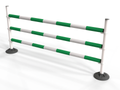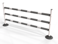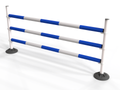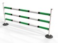 Polyjumps’ versatile ultimate pole wings comprising of a heavy recycled black base with upright white poles. These simple jumps can be set to jump up to 1.5m with height details printed on each upright pole.