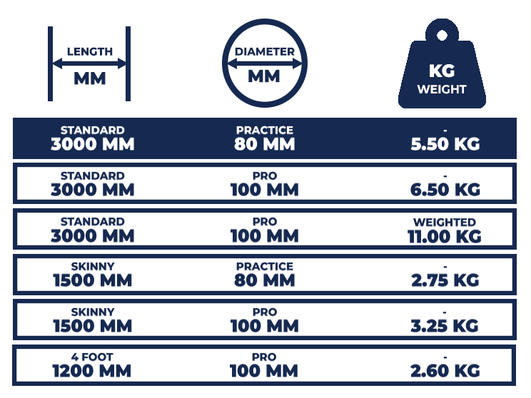 Weight:   Practice (5.5 kg); Pro (6.5 kg); Weighted (11.0 kg)