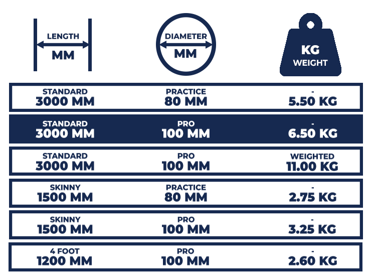 Weight:   Practice (5.5 kg); Pro (6.5 kg); Weighted (11.0 kg)